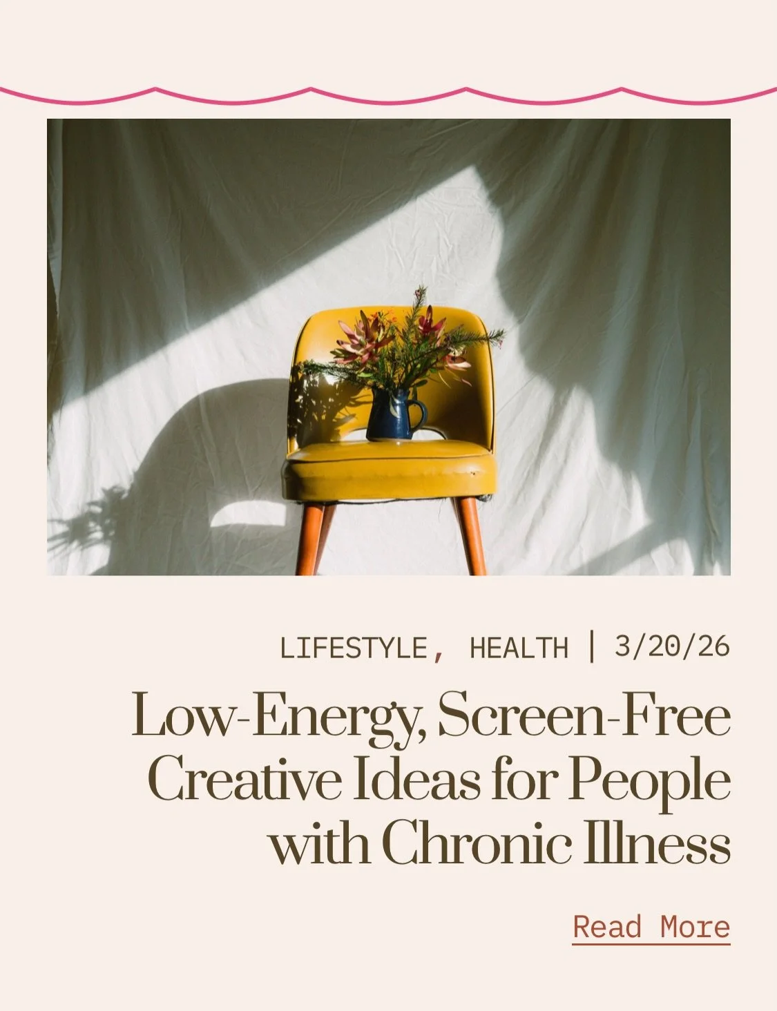 Chronic illness and endometriosis advocacy & storytelling- Visual storytelling, writing, and content creation for awareness campaigns and underrepresented voices.